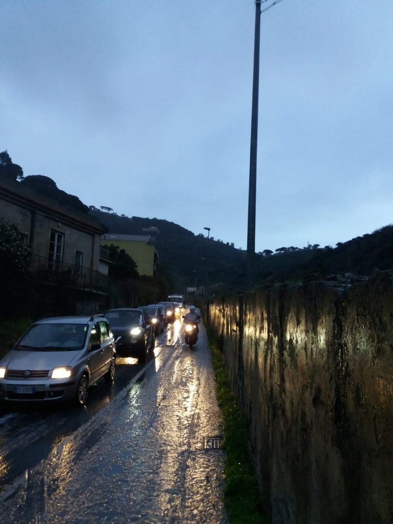 Nulla di grave ma l’auto è rimasta di traverso nell’unica strada, a doppio senso, di collegamento tra i centri collinari della zona nord e il centro città. Così c’è chi ha pensato di passare dentro il torrente, in attesa che si sbrogliasse la situazione.