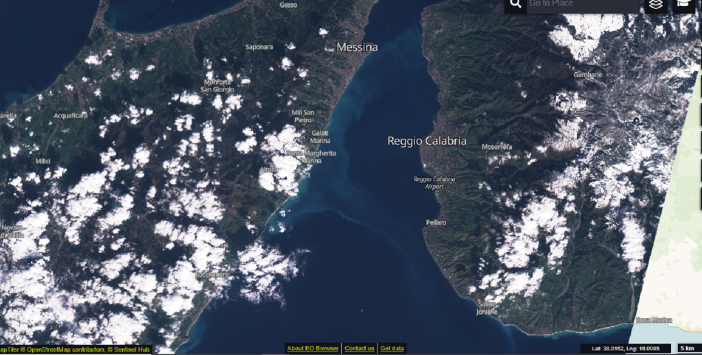 Nello scatto di ieri è stato possibile osservare una grande striscia di acqua torbida, dal colore marrone giallastro, che si estende per diverse miglia, in direzione della parte centrale dello Stretto di Messina. La corrente “montante”, che dallo Ionio risale tutto lo Stretto, ha risucchiato dentro lo Stretto buona parte di questi detriti, spingendoli fino in direzione della costa sud del capoluogo peloritano, favorendo pure l’insabbiamento dell’approdo di Tremestieri, inservibile in queste situazioni in cui i detriti solidi si muovono da sud verso nord.