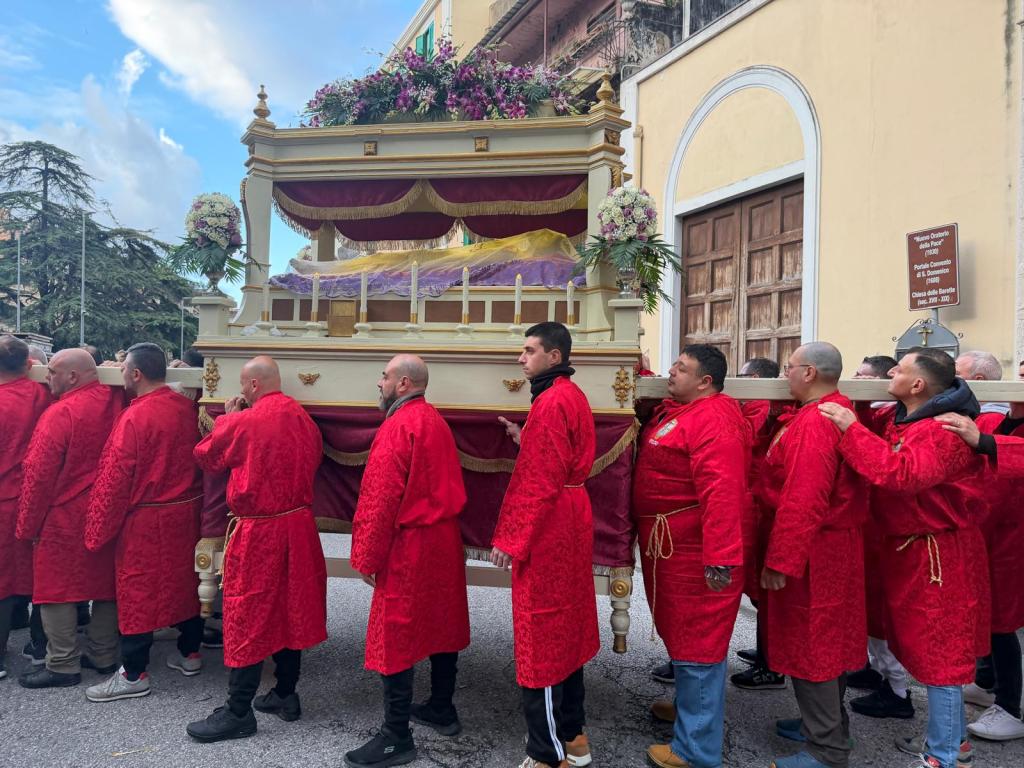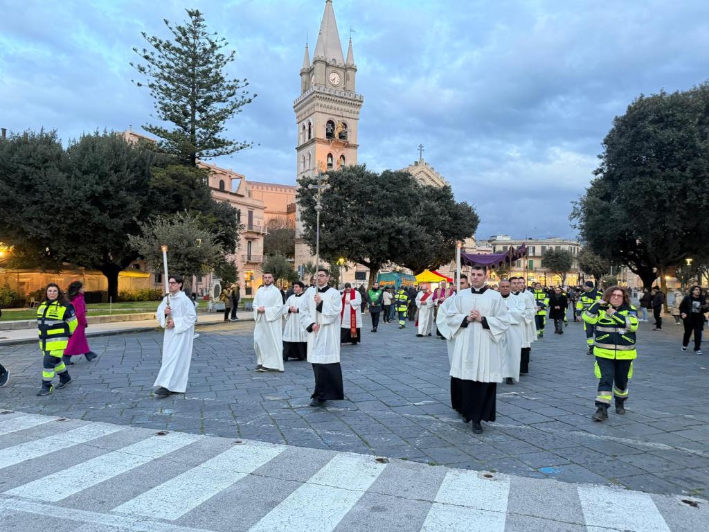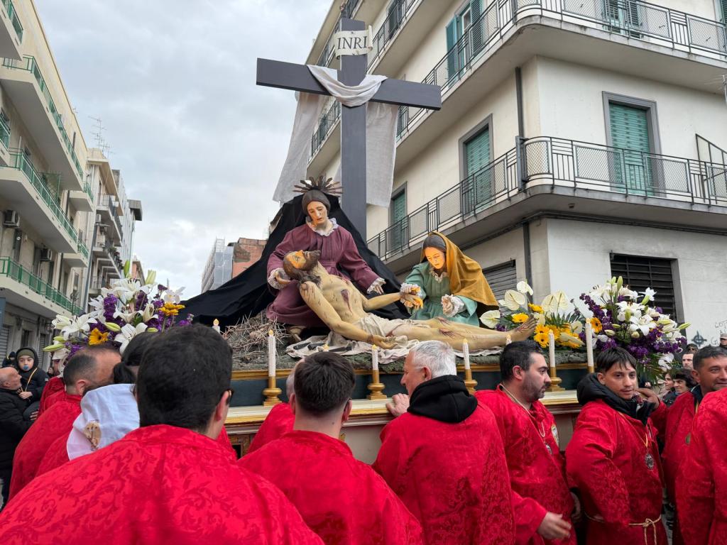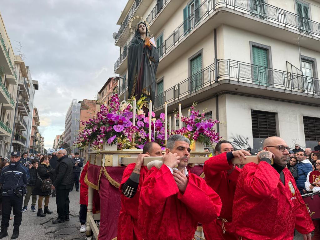 MESSINA – La secolare processione delle Barette si rinnova a Messina. La Passione di Cristo sfila per le vie del centro. Un corteo accompagnato dalla marcia funebre suonata dalle bande musicali. Le 11 barette sono uscite come da tradizione dalla chiesa Nuovo Oratorio della Pace in via 24 Maggio e stanno percorrendo un itinerario ridotto per il rischio maltempo. La processione infatti sta percorrendo il corso Cavour e subito dopo la via Tommaso Cannizzaro, da qui non si proseguirà fino alla via Garibaldi ma il corteo svolterà in via Cesare Battisti. E poi imboccherà la via I Settembre per raggiungere piazza Duomo. Davanti alla Cattedrale poi i fedeli riceveranno la benedizione da parte del vescovo ausiliare mons. Cesare Di Pietro. Solo dopo le barette faranno ritorno nella chiesa in cui vengono custodite attraverso la tradizionale “nchianata”.