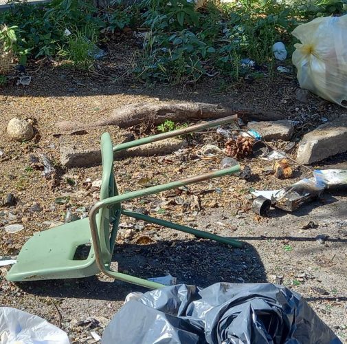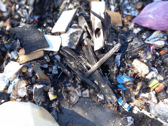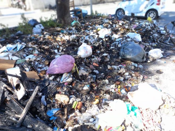 Peraltro, si potrà notare dalle immagini un dettaglio ulteriormente assurdo. Neanche il tempo per l’idiota di turno d’appiccare l’incendio ai rifiuti che molti altri sacchi di spazzatura, nient’affatto bruciati, hanno “raggiunto” quelli dati alle fiamme. Per non parlare di sedie, stendini, aggeggi vari per bambini…