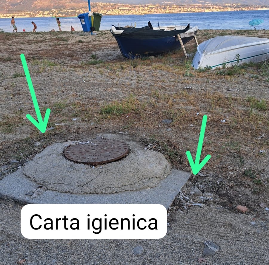 Continua il lettore: “L’aspetto che inquieta maggiormente è questo: dalle botole dell’impianto, a ogni pioggia, sgorgano importanti quantità di liquami che si trasformano in veri e propri ruscelli di acqua nera. E che vanno a sversare nelle splendide acque dello Stretto. Durante il loro percorso, favoriscono una folta vegetazione spontanea, che in queste ore è pure fiorita e si possono “ammirare” fiori di zucca, pomodorini, etc. Il danno maggiore è dato dalla cospicua quantità di materiale solido che esce dai tombini, che in quanto tale, rimane attaccato all’asfalto e intrappolato in spiaggia tra gli arbusti venuti su spontaneamente, per effetto del concime organico. Se si percorre il tratto di spiaggia partendo da via Pietro Caristi, verso Ganzirri, si incontrano diversi tombini, tutti con segni evidenti di trabocco e con il solco scuro tracciato dal singolo ruscello”.