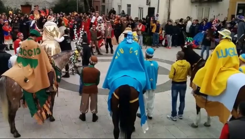 La regola era la non regola, la trasgressione, l’eccesso alimentare, la sfrenatezza sessuale e orgiastica, l’assoluta libertà che si traduceva in comportamenti licenziosi e burleschi. A porre fine agli eccessi ci pensò la Chiesa coniando il termine carnevale, dal latino “carnem levare”, cioè “togliere la carne (dal fuoco)”, che segnava l’inizio della Quaresima. Da allora il carnevale ha assunto una dimensione particolare e complessa, radicandosi fortemente nel vissuto popolare. Appuntamento dunque con i riti carnevaleschi più curiosi e originali che saranno rievocati in tutta la provincia. A Saponara, il martedì grasso, singolare sfilata del “Corteo dell’orso e della Corte principesca”, una vera e propria festa che coinvolge tutta la popolazione. Il rito rievoca la cattura da parte del signore del borgo, di un feroce orso che anticamente terrorizzava i contadini. Protagonista del corteo è appunto l’orso.