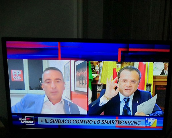 A "Non è l'Arena" di Giletti in onda lo scontro tra il sindaco di Messina e il sindacalista della Cgil Fucile. Tema del contendere: il rientro in ufficio