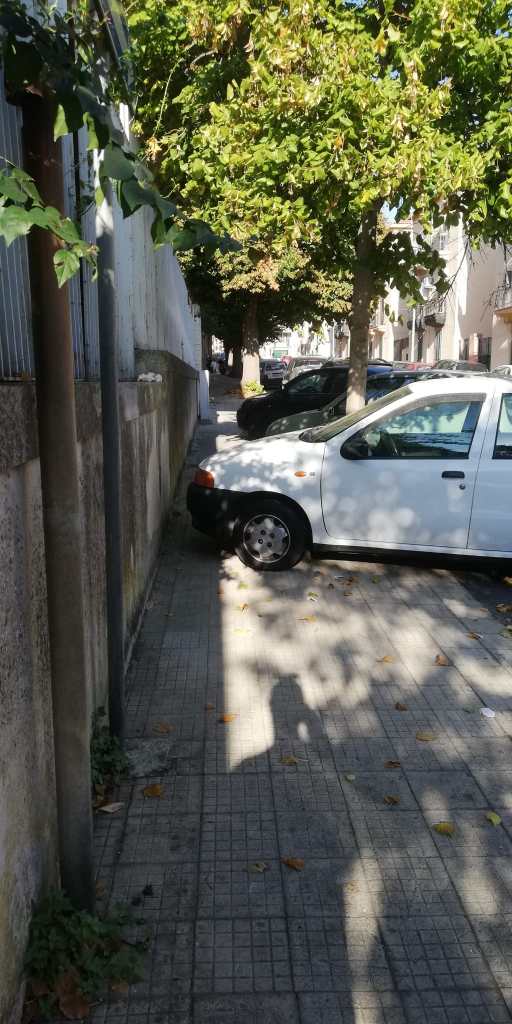 In zone ove presenti strisce blu, una su tre è occupata da questi alberelli, che un giorno non troppo lontano andranno a distruggere la carreggiata con le loro radici, un po’ come la circonvallazione….
