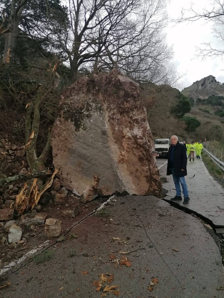 Il distacco di materiale si è verificato da un costone roccioso – di proprietà di terzi – attiguo alla tratta stradale.