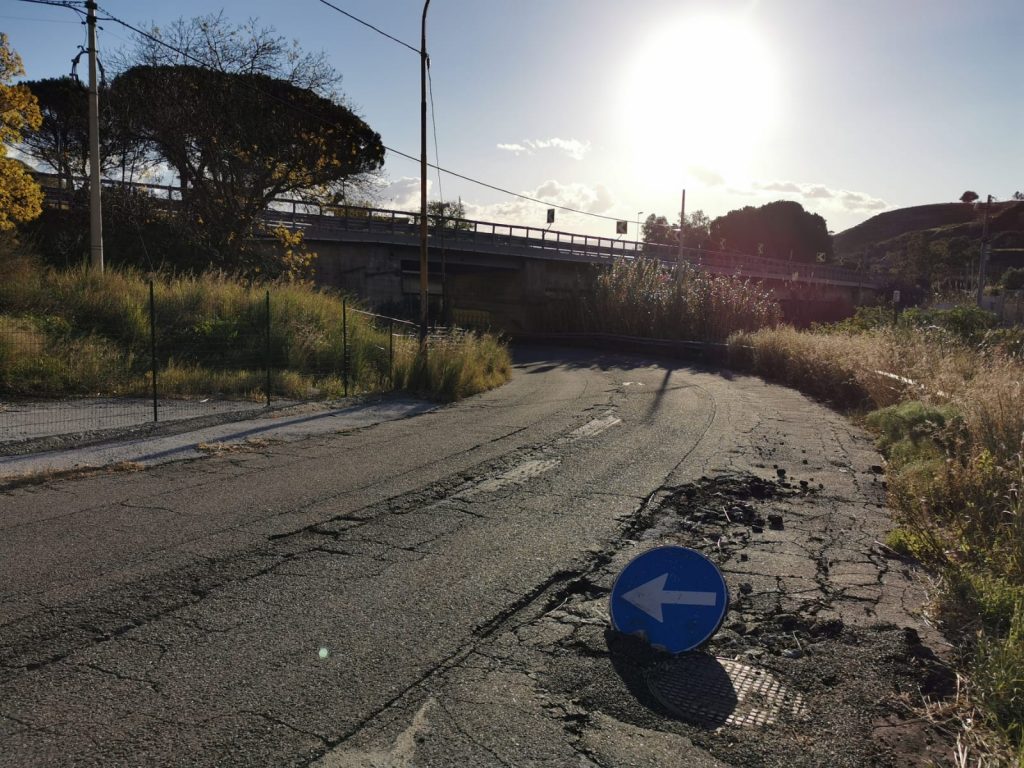 Scendendo lungo la via Comunale Zafferia non potete concedervi distrazioni: con il sole in fronte, a pochi passi dal viadotto autostradale, rischiate di centrare in pieno un segnale di obbligo a sinistra. E nel tentativo di superarlo all’ultimo istante rischiare anche peggio: potreste beccare l’autobus o un’altra macchina.