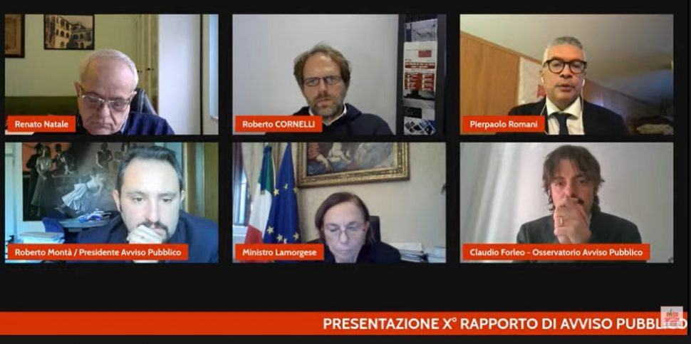 Una videoconferenza dipanatasi online e in streaming sui social network, quella moderata dal coordinatore nazionale di Avviso pubblico Pierpaolo Romani. A caratterizzarla, soprattutto la presenza del ministro dell’Interno Luciana Lamorgese.