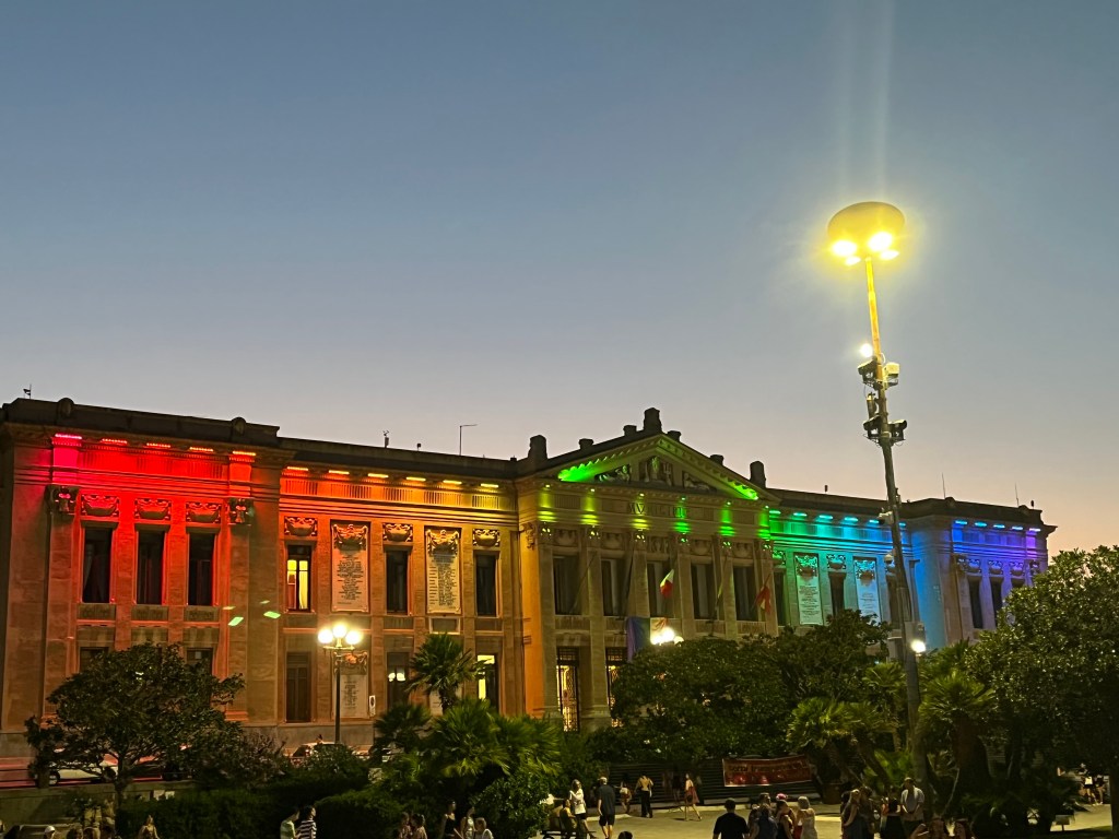 Non sembra più di camminare per le nostre strade. Anche il Municipio si illumina dei colori dell’arcobaleno. Il Pride trasporta tutti in una festa; unisce, diverte, ma con una leggerezza la cui forza non va ignorata. La leggerezza del Pride porta con sé una lotta importante. Risponde agli insulti, alla violenza, alla non accettazione, non con le stesse armi, ma con la musica, i brillantini e i sorrisi. A Messina lo ha fatto, rendendo davvero una comunità chi vi ha partecipato, donandogli sicurezza e speranza; e mostrando, invece, a chi non lo guardava di buon occhio, ciò che è e vuole essere: nessuna carnevalata, nessuna follia, ma una lotta coraggiosa per i diritti.