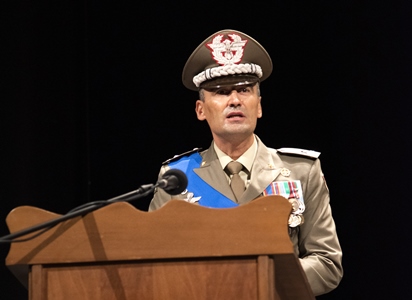 Il generale Terzano, comandante della Divisione “Acqui”, dopo aver espresso un commosso ricordo dei Caduti e la propria vicinanza al personale che sta combattendo contro gravi patologie, ha manifestato nella sua allocuzione il plauso al Generale Pisciotta per i brillanti risultati conseguiti dalla Brigata “Aosta” sia nelle delicate operazioni in territorio estero sia nei molteplici concorsi forniti a favore della collettività nazionale. Al riguardo ha evidenziato la fondamentale importanza dell’addestramento e della dedizione al servizio che permettono ad ogni militare di contribuire all’assolvimento delle sempre più eterogenee missioni assegnate. Ciò è possibile, ha sottolineato il comandante dell’Acqui, quando ogni uomo o donna con le stellette può godere della vicinanza dei propri affetti, ringraziando in tal senso tutte le famiglie dei Leoni d’Aosta per i sacrifici sostenuti ed il prezioso supporto fornito ai loro cari in uniforme. Chiudendo il proprio intervento, ha rivolto al Generale Bertoncello l’augurio per le migliori fortune nell’avvincente esperienza di comando che lo attende.