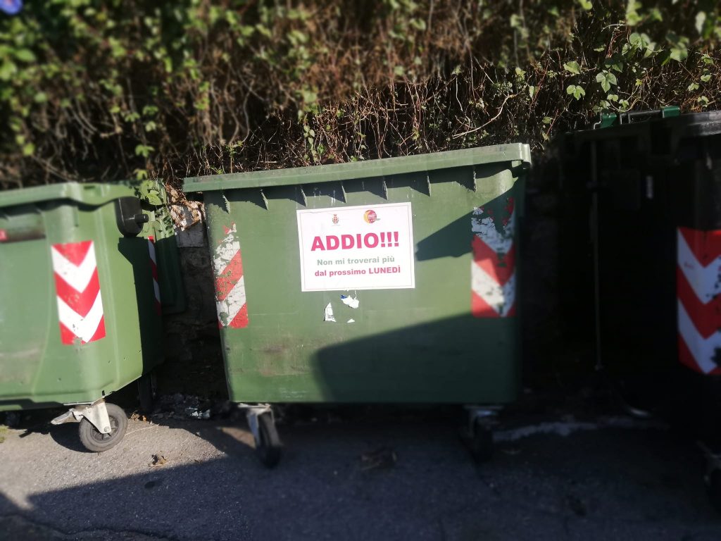 Ancora vengono utilizzati due cassonetti che per 24 ore emanano un profumino di discarica. Ma non importa fa freddo, stiamo tutti al chiuso.