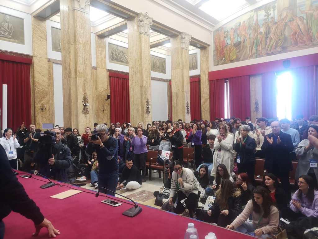 Un Salone delle Bandiere gremito da ragazzi delle scuole cittadine e operatori del terzo settore quello che ha accolto i quattro speaker d’eccezione che si sono alternati stamane: Maura La Greca, responsabile comunicazione dell’Antoniano di Bologna, principale punto di riferimento della comunicazione sociale in Italia, che ha parlato ai ragazzi del valore dell’impegno per la cura verso l’altro e delle storie, nel racconto del sociale. A Simone Tempia autore di Vita con Lloyd, che a colloquio col giornalista Alessio Caspanello ha affrontato l’aspetto legato alla creatività e alla parola come esercizio di libertà.