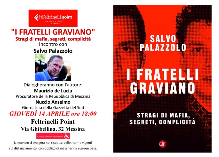 MESSINA – Giovedì 14 aprile 2022 alle ore 18 alla Feltrinelli Point, Salvo Palazzolo incontrerà il pubblico e parlerà del suo ultimo libro “I Fratelli Graviano”, stragi di mafia, segreti, complicità. Dialogheranno con lui, Maurizio De Lucia (Procuratore della Repubblica di Messina) e il giornalista Nuccio Anselmo.