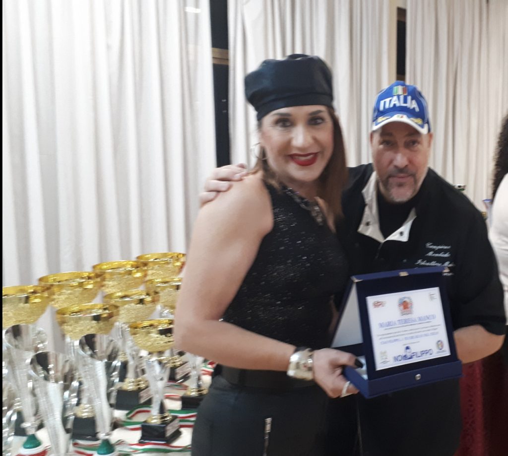 Carmelo Guarnera ho ricordato con grande emozione anche la perdita di sua mamma il 9 novembre 2021, Maria Annaccarato Bengasina, e di un altro amico e collega giudice e campione scomparso il 30 ottobre 2021, Abramo Fini. Il pizzaiolo showman Carmelo Guarnera è stato bravo a gestire con grande professionalità queste grandi emozioni nei brani per Filippo. Subito dopo arriva la donazione all’amico fraterno, l’organizzatore Francesco Matellicani, di una targa personale per la famiglia, nel ricordo del figlio, ed anche un’altra targa all’Associazione “Noi per Filippo”. Poi, una targa di ringraziamento per la cantante Maria Teresa Manco per essere stata presente come corista nella presentazione dei due brani.