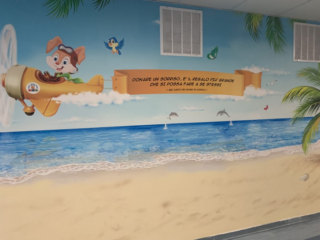 L’opera è un unicum in Sicilia e da Salerno in giù, grazie all’arte di Silvio Irilli, fondatore di Ospedali Dipinti, il cui intento è, in collaborazione con le Onlus, portare luce e colore negli ospedali.