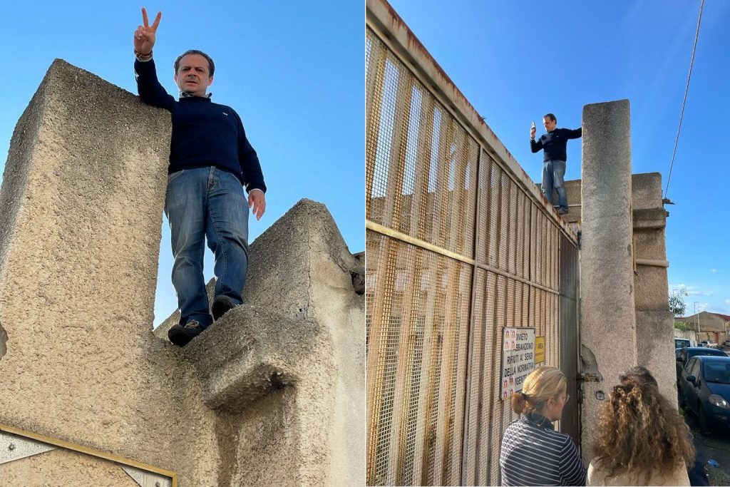Tra un giro e l’altro nei quartieri, per la sua campagna elettorale, il sindaco Cateno De Luca ha trovato anche il tempo di “scalare” l’ex Sanderson di Pistunina. Si è arrampicato oltre il cancello e da lì ha fotografato la situazione.