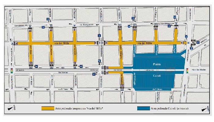 Il Consiglio Comunale, con Deliberazione numero 643/C dello scorso sabato 4 dicembre, ha proposto alla Giunta l’istituzione, durante il periodo natalizio, dell’area pedonale nel tratto della via dei Mille, compreso tra le vie Cannizzaro e Santa Cecilia, in deroga al vigente Piano Generale del Traffico Urbano (Pgtu) del 1998; la giunta municipale, con Deliberazione numero 706 dello scorso martedì 7 dicembre, ha accolto la proposta del Consiglio e, pertanto, ha istituito, da domani, sabato 11, sino al 9 gennaio 2022, le aree pedonali nei tratti delle vie: dei Mille, tra le vie Cannizzaro e Santa Cecilia, ad eccezione dell’intersezione con la via Maddalena; Dogali, Fabrizi e XXVII Luglio, tra le vie Risorgimento e dei Mille; E. Lombardo Pellegrino, tra la via Risorgimento e il viale San Martino; Camiciotti, Manara e Bixio, compresi tra la via Risorgimento e il viale San Martino; in entrambe le carreggiate del viale San Martino, tra le vie E. Lombardo Pellegrino e Maddalena, ad eccezione della sede tranviaria e nel tratto della via E. Lombardo Pellegrino, compreso tra il viale San Martino e la via G. Bruno.