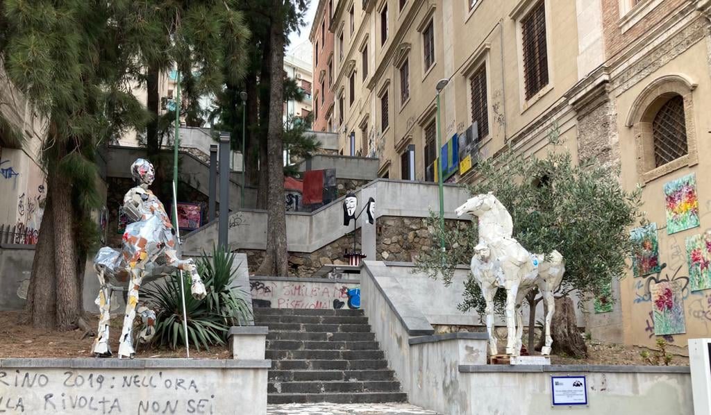 Tredici artisti coordinati da Pippo Recupero, estimatore d’arte, hanno animato con le loro opere le rampe della Scalinata di via XXIV Maggio intitolata a Rosa Donato, eroina messinese dei moti del 1848.