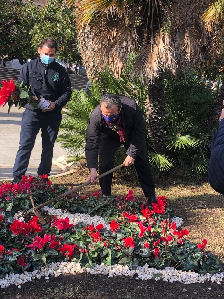 Stelle di natale e ciclamini per abbellire piazza Unione Europea