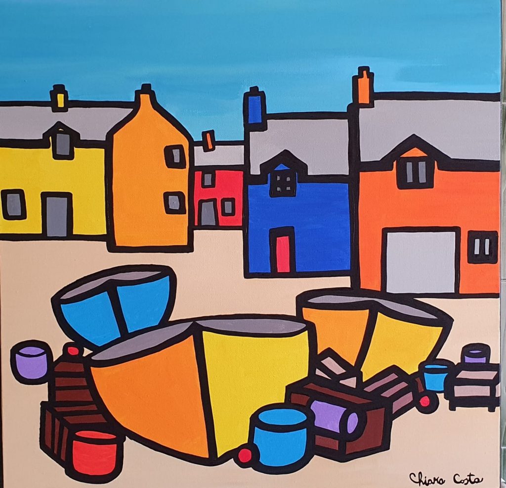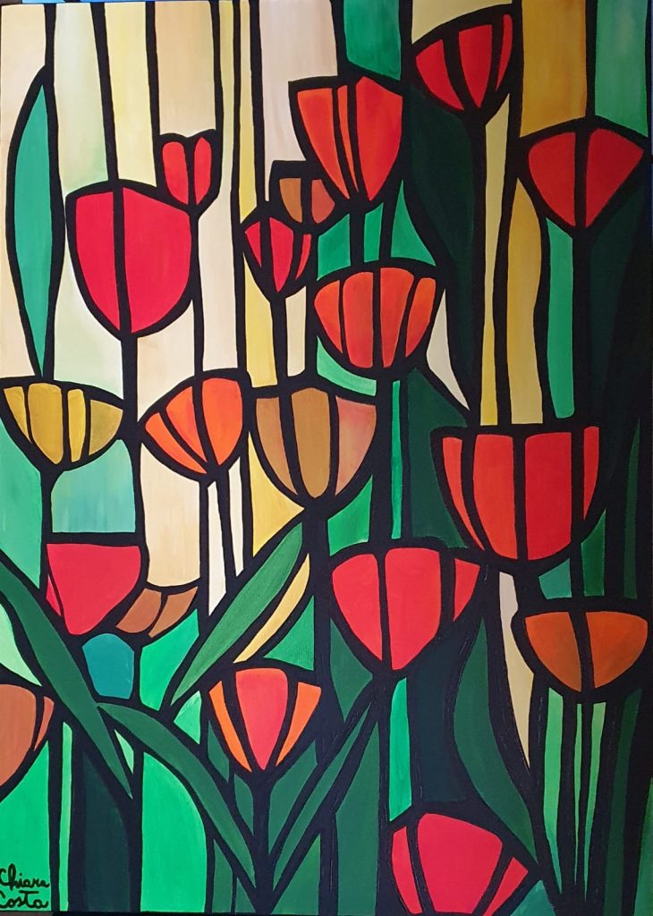 Chiara Costa dipinge su tracce date, perché non affronta lo spazio bianco e indefinito della tela. Così come nel quotidiano evita di lasciare la propria impronta personale nella socialità, ritirandosi protetta dietro lo schermo rassicurante del silenzio. Segnare un dipinto, progettarlo, ripartire una superficie, destinarla a una funzione nella dinamica della composizione sono tutte azioni che hanno un’intrinseca violenza, positiva, costruttiva ma pur sempre perentoria. Lei rifugge da quest’assalto, lo evita ma posta davanti a un disegno in bianco e nero avverte la necessità impellente – per un proprio equilibrio personale – di colmarlo, di dargli pienezza di vita e colore.