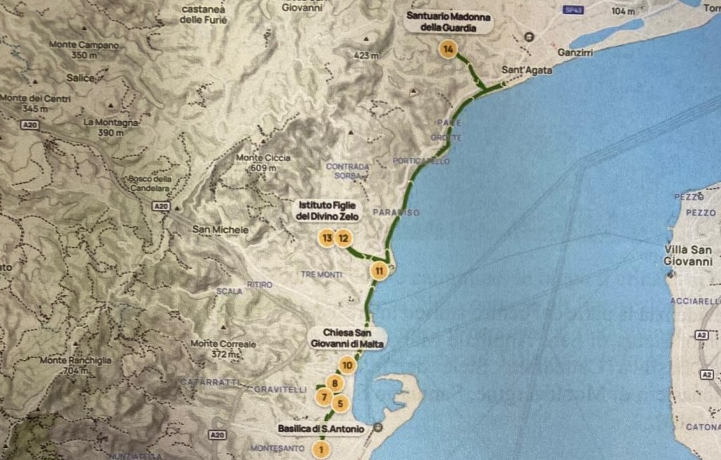 Suor M. Barbara, illustrando nel dettaglio il percorso, ha spiegato che il Cammino prende avvio dal quartiere Avignone, luogo in cui Sant’Annibale iniziò la sua vita di dedizione ai più bisognosi. Da qui si snoda attraverso una serie di siti strettamente legati alla sua opera e alla storia spirituale e culturale della città. Le tappe toccano: la Chiesa dello Spirito Santo; la Chiesa del Carmine; la Scalinata Santa Barbara; la Chiesa di Santa Maria delle Trombe; la Cattedrale; la Chiesa dell’Immacolata; il Santuario di Montalto; il Monastero di Montevergine; il Santuario di San Francesco all’Immacolata; la Chiesa di San Giovanni di Malta; la Chiesa di Porto Salvo; la Chiesa del Ringo; il Museo Regionale di Messina; la Casa Natale di Santa Eustochia; l’Istituto delle Figlie del Divino Zelo all’Annunziata. Il percorso si conclude al Santuario della Madonna della Guardia, luogo dove Sant’Annibale Maria Di Francia si spense e che rappresenta il punto spiritualmente culminante dell’intero Cammino.