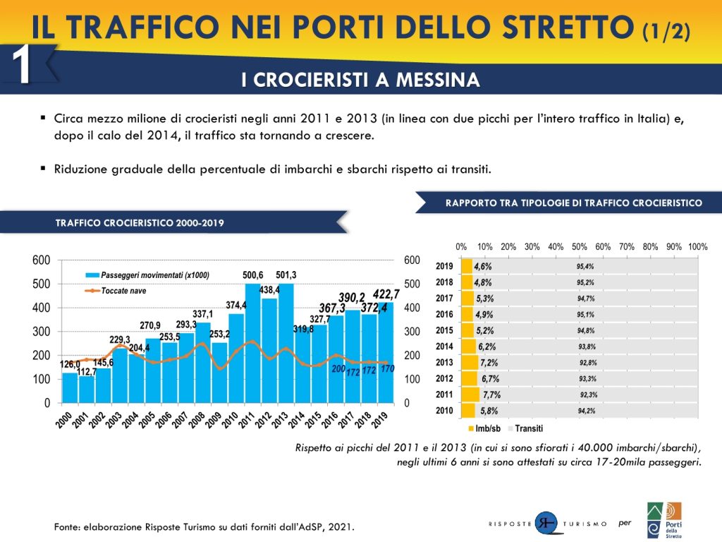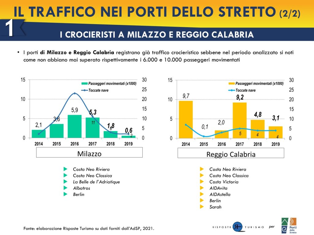 I dati – illustrati dal presidente di Risposte Turismo Francesco Di Cesare – analizzano il mercato e danno alcune indicazioni su quali sono le cose da fare subito, per migliorare l’offerta ai crocieristi in arrivo, e integrare nell’offerta, o meglio migliorare la presenza, dei porti di Milazzo – che nel 2020 ha fatto il record i 6 mila presenze crocieristiche con 5 compagnie, e Reggio Calabria, che non è mai andata oltre i 10 mila movimenti nel 2014.