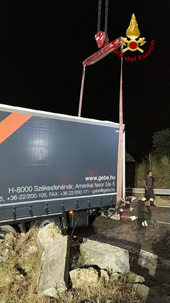 Dopo averlo riallineato sulla corsia stradale e aver messo in sicurezza tutta l’area, il tir ha potuto riprendere la sua strada, scortato per un breve tratto dai carabinieri.
