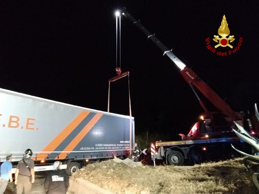 I vigili del fuoco del Comando di Messina sono dovuti intervenire con autogru, poco dopo la mezzanotte, per soccorrere il grosso mezzo, di provenienza ungherese.