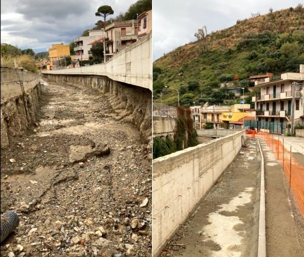 “Nel torrente abbiamo trovato di tutto – spiega l’assessore Francesco Caminiti, in sopralluogo insieme al sindaco Cateno De Luca -. In particolare sottoservizi non censiti da tanto tempo e scarichi fognari abusivi. L’Amam è intervenuta per collegare gli scarichi in un tubo provvisorio e si sta facendo una nuova condotta che li porterà fino a valle”.