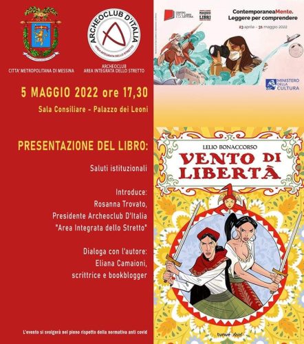 MESSINA – Appuntamento per domani, giovedì 5 maggio, alle ore 17:30 nella sala consiliare di Palazzo dei Leoni, dove l’autore Lelio Bonaccorso presenterà il suo libro vento di libertà. Il messinese, all’evento organizzato dall’Archeoclub dello Stretto e dalla Città Metropolitana di Messina, sarà introdotto dalla presidente dell’Archeoclub Rosanna Trovato. Bonaccorso dialogherà poi del suo ultimo lavoro con la scrittrice e bookblogger Eliana Camaioni.