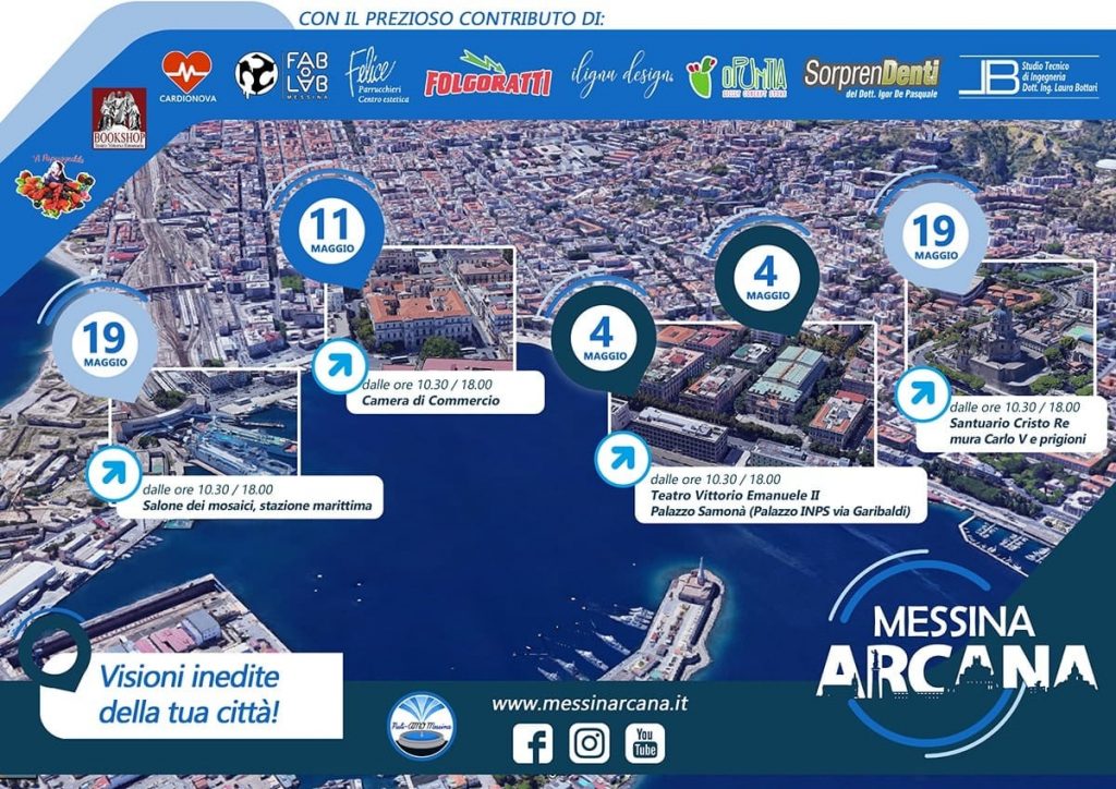 Si è svolta nella Sala Sinopoli del Teatro Vittorio Emanuele la conferenza di presentazione della nuova manifestazione culturale “MessinArcana”. La manifestazione, promossa dall’associazione No Profit Puli-AMO Messina, vedrà l’apertura al pubblico di siti culturali solitamente inaccessibili, sconosciuti o non sufficientemente valorizzati. Le visite si svolgeranno il 4, l’11 e il 19 maggio e vedranno il coinvolgimento di numerosi enti ed istituzioni che in questi mesi hanno collaborato attivamente nella realizzazione del progetto. “MessinArcana” proporrà al pubblico un tour del tutto innovativo e inedito per la città di Messina e i proventi ricavati dalla manifestazione saranno interamente destinati per l’opera di riqualificazione di un monumento cittadino, e cioè la nuova illuminazione artistica della fontana del Nettuno.