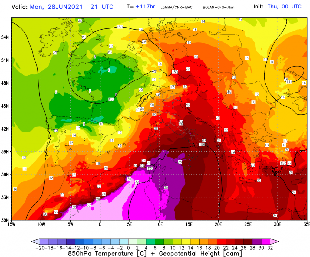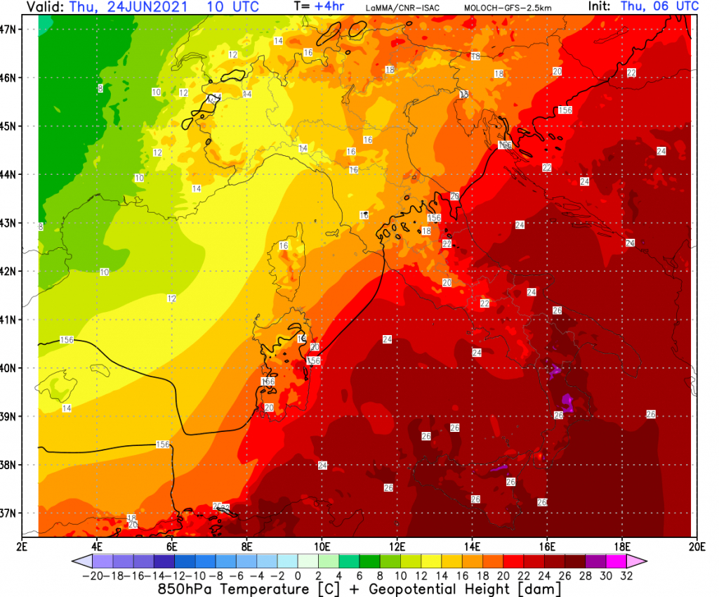 Purtroppo bisognerà continuare a stringere i denti fino a tutto domani e la giornata di sabato 26 giugno, quando le temperature inizieranno a perdere qualche grado, rimanendo pur sempre sopra le medie del periodo. Solo da domenica 27 giugno si potrà tornare a respirare, con temperature massime sempre superiori ai +30°C +31°C, ma decisamente più sopportabili rispetto a quelle registrate in queste ore. Inoltre, sempre domenica, la ventilazione in quota si disporrà dai quadranti più occidentali, pulendo un pochino la coltre celeste dalla massa di pulviscolo desertico che appanna il cielo, dandogli quell’aspetto fosco e lattiginoso.