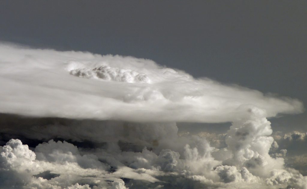La torre di un grosso cumulonembo temporalesco vista dallo spazio