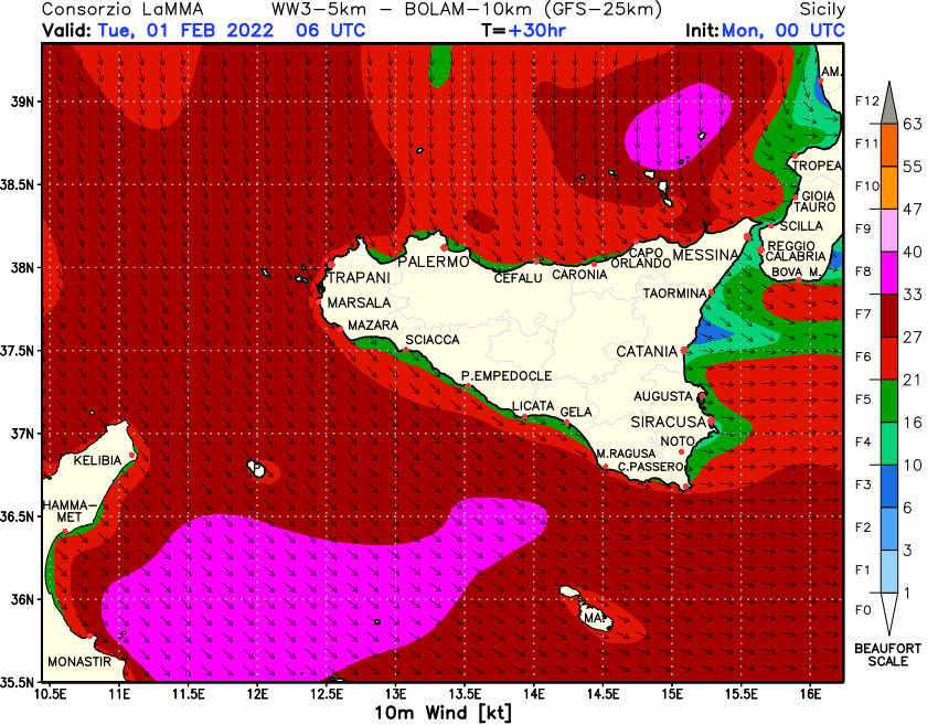 Le temperature subiranno un ulteriore calo, con le massime che non andranno oltre la soglia dei +12°C e le minime sui +9°C +8°C. I venti si disporranno da Nord sul Tirreno, da NW e N-NW sullo Stretto a zona ionica, soffiando forti, con raffiche di picco che nel primo pomeriggio potrebbero toccare punte di 60-70 km/h sui punti esposti della costa tirrenica. Raffiche da NW e NNW si inseriranno pure in città, con folate capaci di registrare picchi di oltre 60, ma picchi localmente superiori si potrebbero registrare lungo l’imbocco delle fiumare e all’uscita delle valli dei Peloritani. Il Tirreno si renderà rapidamente da molto mosso ad agitato, con onde di “mare vivo” alte fino a più di 3 metri a largo, e rischio di mareggiate lungo le esposte coste tirreniche, specie nel tratto più occidentale della costa tirrenica, da Tusa fino a Capo Milazzo