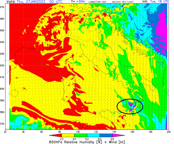 Smaltiti gli effetti di questa ondata di freddo, in ritirata verso i Carpazi, la Turchia e l’area del mar Nero, dove si verificheranno nuove nevicate, sino alle coste, aria meno fredda in queste ore sta entrando sul Tirreno, tramite una moderata ventilazione di maestrale che spinge anche un po’ di umidità, responsabile degli innocui annuvolamenti che si addossano fra i Peloritani e l’Aspromonte. L’ulteriore rialzo della pressione atmosferica, sia in quota che al suolo, nelle prossime ore garantirà un ulteriore stabilizzazione della colonna d’aria. Va pero detto che nei bassi strati, soprattutto sul Tirreno, l’aria sarà alquanto umida, tanto da favorire la formazione di banchi di nubi basse, come gli stratocumuli, che domani si potranno addossare ai Peloritani e lungo la costa tirrenica e area dello Stretto di Messina.