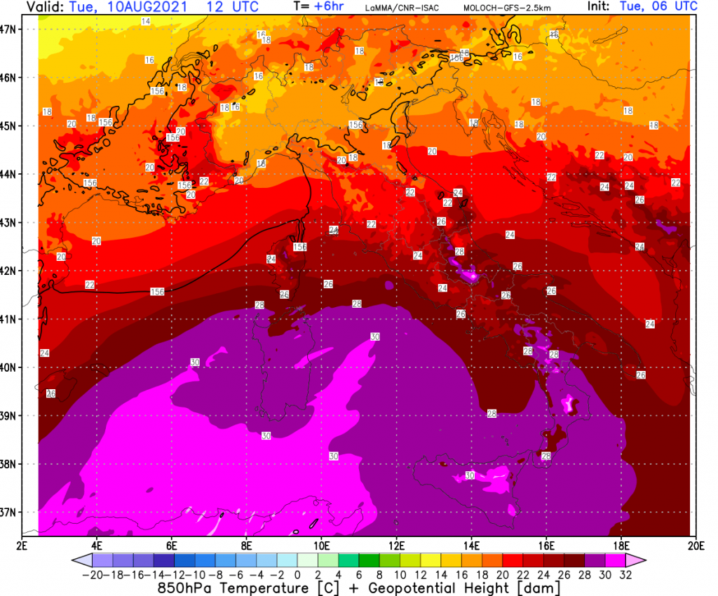La massa d’aria rovente sahariana verrà scacciata via dall’irrompere di correnti settentrionali, meno calde, che provocheranno, già da giovedì 12 agosto 2021, un graduale calo delle temperature che comunque continueranno a rimanere pur sempre sopra le medie del periodo. Ma su valori un pochino più tollerabili, almeno fino al weekend di Ferragosto. Domani avremo temperature massime sempre elevate, che si spingeranno sopra i +33°C +34°C, nonostante il soffio delle brezze lungo tutta la fascia costiera. Ma come detto sarà un caldo decisamente più sopportabile, anche se accompagnato da valori di umidità relativa più alti rispetto a quelli dei giorni scorsi.