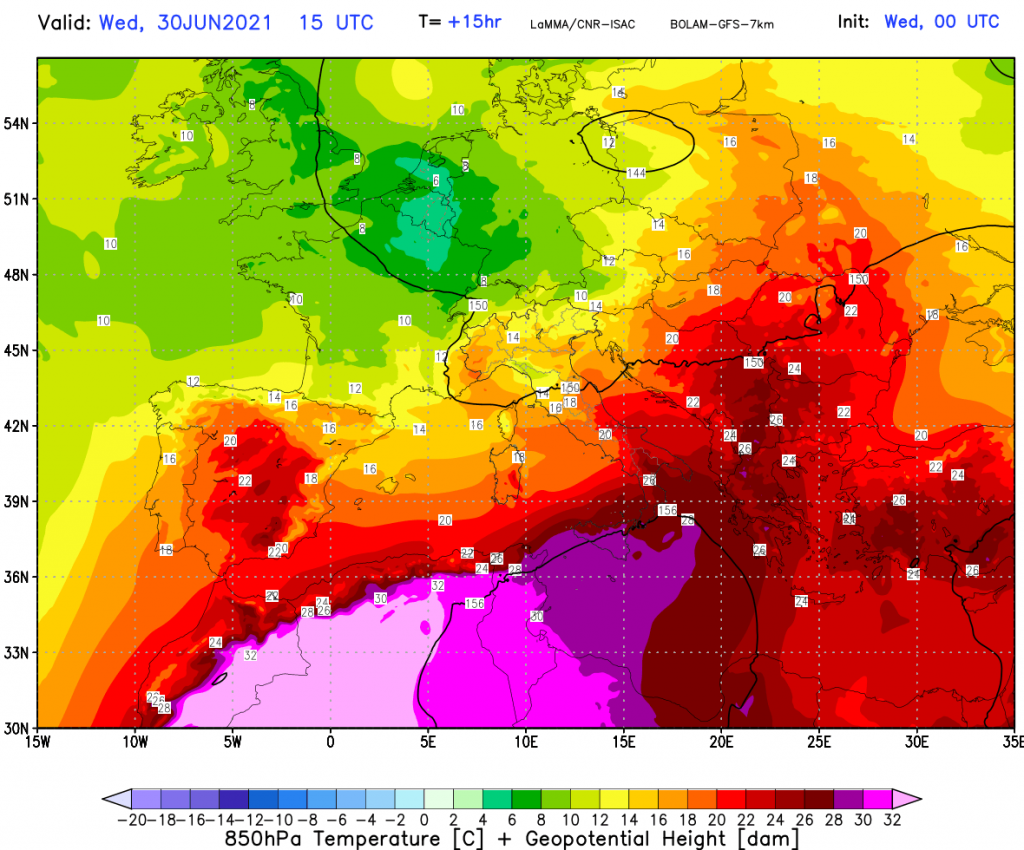 Chi conosce le particolarità del microclima siciliano sa benissimo che in queste situazioni le aree attorno la piana di Catania, o le conche e vallate più interne del siracusano, ragusano, ennese, nisseno, e anche messinese (le vallate più interne, racchiuse da colline o piccole montagne), si trasformano in autentici forni, “arroventati” dall’azione incessante dell’insolazione che surriscalda notevolmente il terreno. Anche se in passato si sono avute altre ondate di calore di questa intensità, su tutte quella di fine giugno 2007 che causò la caduta di decine di record storici (Messina fece +43,4°C, a soli 0,2°C dal record assoluto del 1999), bisogna anche dire che sperimentare temperatura massima superiore ai +38°C +40°Cnel giro di 10 giorni è un evento davvero raro, come durata. Specie si in quota si hanno isoterme fino a +28°C a 1500 metri sulla Sicilia (vedi mappa accanto), che spiegano proprio l’intensità del caldo di oggi. Fortunatamente, già da domani, le temperature tenderanno a scendere, portandosi su valori più vicini alle tipiche medie estive. Gli effetti di questo drastico cambiamento, pero, si avvertiranno maggiormente fra la giornata di venerdì 2 e sabato 3 luglio 2021, quando sul messinese le temperature ritorneranno in linea con le medie del periodo, con massime non superiori ai +30°C +32°C e minime più fresche, sui +22°C +23°C a livello del mare.