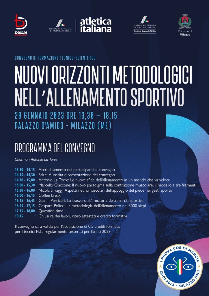 La macchina organizzativa è, intanto, in pieno fermento, come conferma l’ufficialità del convegno di formazione tecnico-scientifico dal titolo “Nuovi orizzonti metodologici nell’allenamento sportivo”, in programma sabato 28 gennaio (dalle ore 13:30 alle 18:15) a “Palazzo D’Amico” di Milazzo, che avrà, tra gli illustri relatori, il direttore tecnico della Fidal Antonio La Torre, grande protagonista dei quattro ori conquistati dall’atletica leggera italiana alle Olimpiadi di Tokyo 2020.