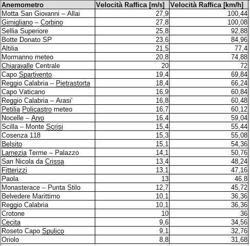 Con raffiche che hanno raggiunto picchi intorno ai 100 Km/h, sono le stazioni appunto di Motta San Giovanni, parte del territorio metropolitano di Reggio Calabria, e Gimigliano, in provincia di Catanzaro, a registrare i maggiori valori di vento, alle 12 di oggi, nella rete di anemometri del Centro Funzionale Multirischi dell’Arpacal, diretto da Eugenio Filice.