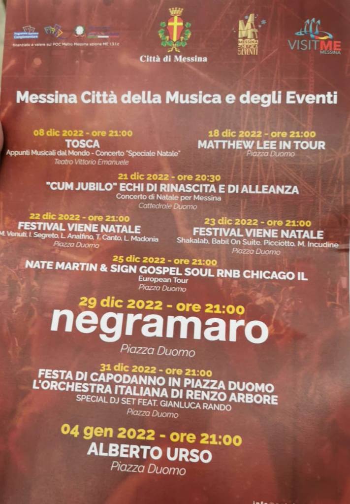 Gentilissimi grazie per aver portato un super gruppo come i Negramaro…. ricordo il piano viabilità quando sono stati allo stadio San Filippo…….navette strade bloccate dal primo pomeriggio al giorno dopo……organizzare per tempo……. viabilità…… grazie