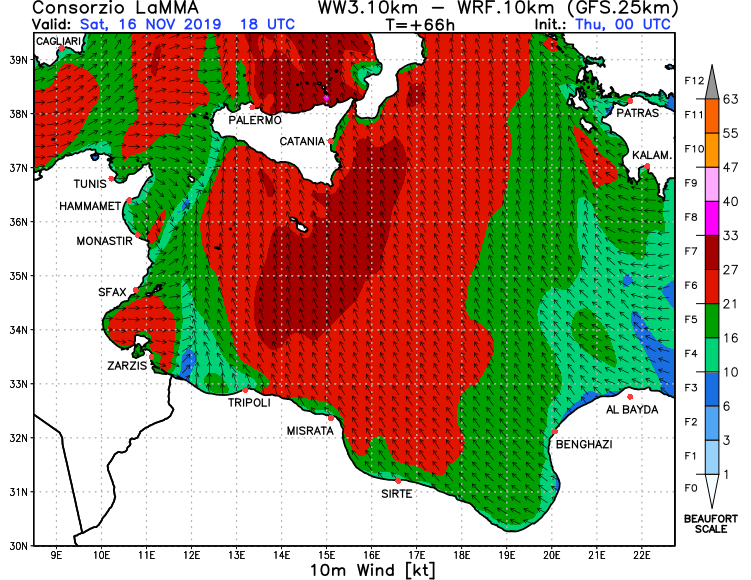 I venti da S-SE che dal Golfo della Sirte risaliranno fino alle coste sicule e calabresi nella giornata di sabato