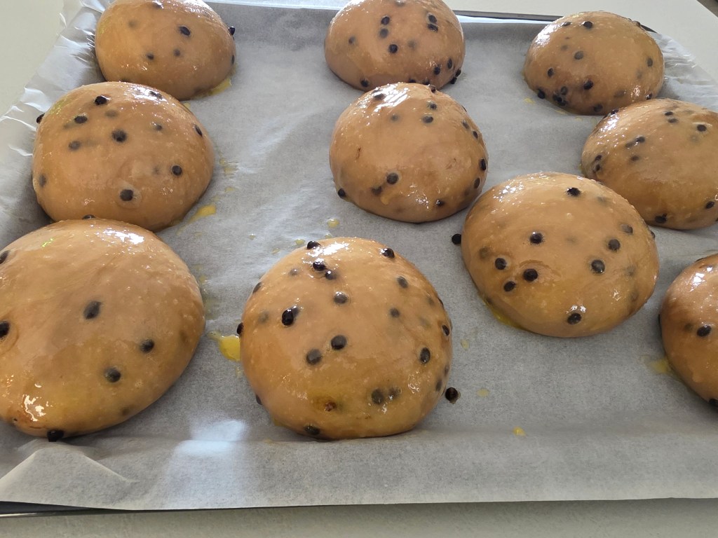 - Cottura: Preriscalda il forno a 180°C (statico). Spennella delicatamente la superficie dei pangoccioli con uovo sbattuto (se desideri un aspetto più dorato). Inforna per circa 15-20 minuti, o finché non saranno dorati.