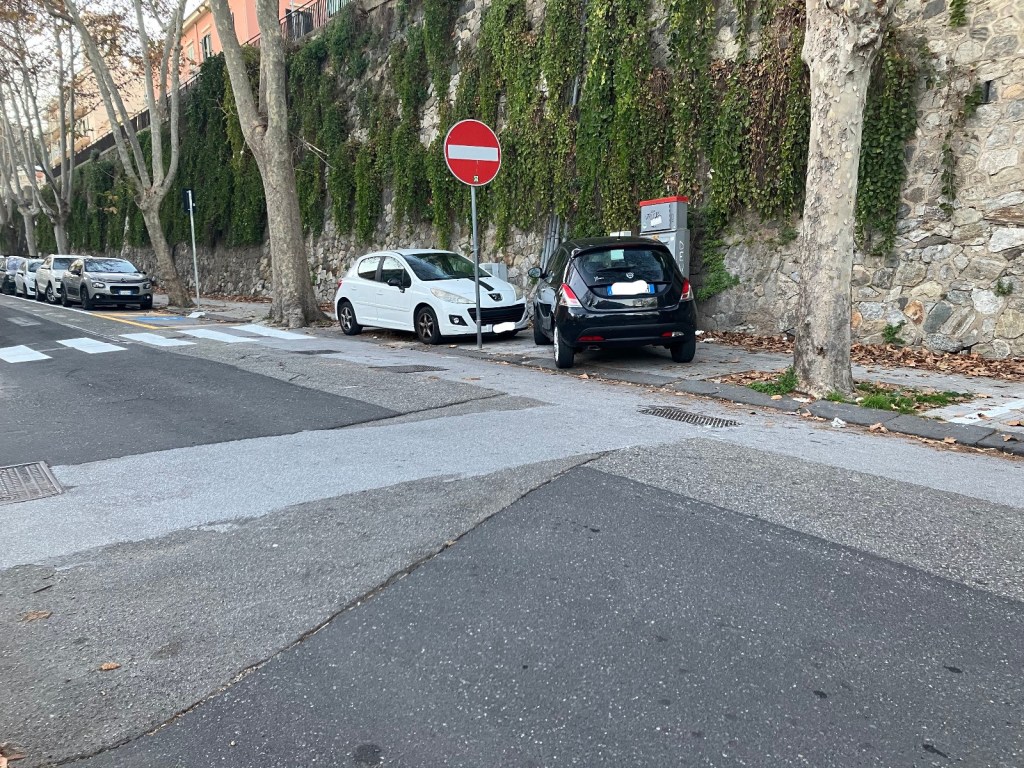 E per non farsi mancare nulla, qualcuno ha provato a parcheggiare in un breve tratto del marciapiede “lato nord” all’altezza delle strisce pedonali. E stavolta non vi sono alibi, in quanto sono stati posti i cartelli stradali in maniera ben visibile e delimitati con vernice gli stalli per il parcheggio.