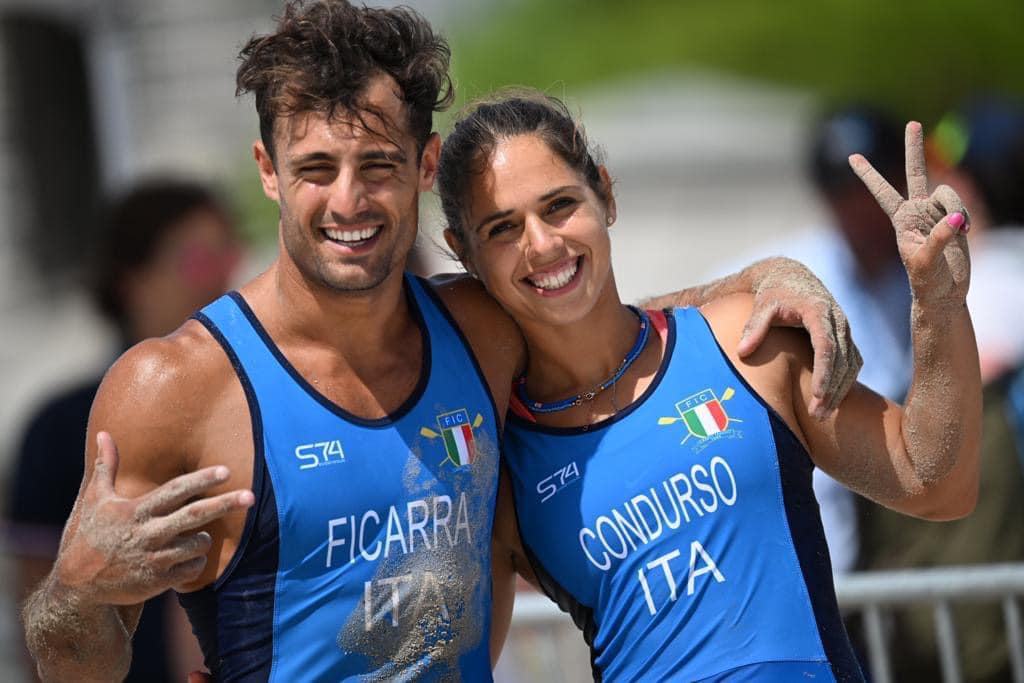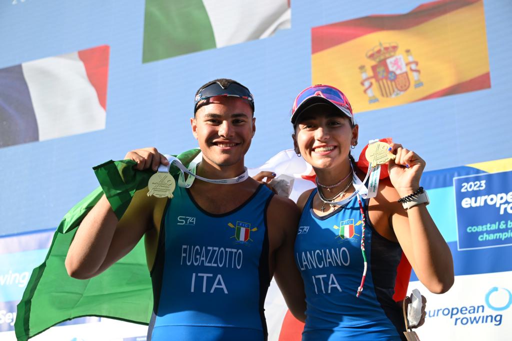 In precedenza aveva brillato anche il più giovane tesserato della Peloro, Lucio Fugazzotto che infatti nella categoria under19 aveva vinto a sua volta la medaglia d’oro nel singolo dove in finale, al termine di una lotta serratissima, ha avuto la meglio sullo spagnolo Delgado Marquez. Fugazzotto poi era stato protagonista di una grande impresa nel doppio misto Under 19 insieme a Maria Lanciano (Lni Barletta), la coppia rimontando quasi due barche di distacco ai francesi nel percorso di ritorno e, approfittando della caduta scendendo dalla barca della concorrente transalpina, conquistava la seconda medaglia d’oro di giornata per l’Italia superando la Francia in finale.