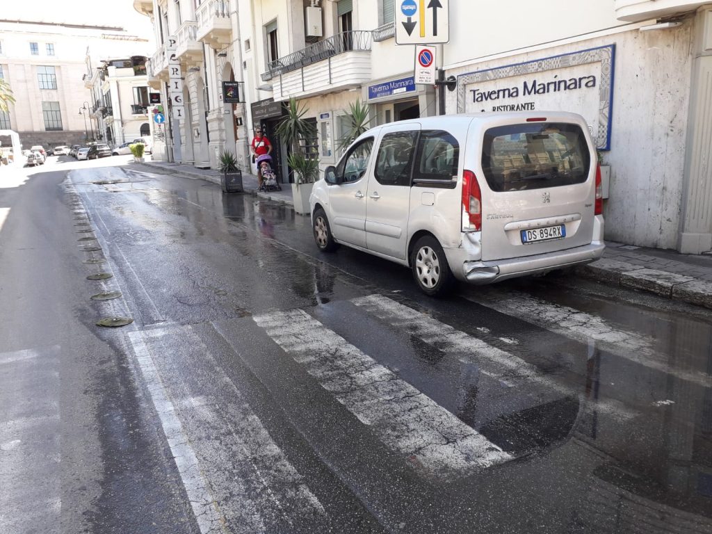 Reggio Calabria, passanti e esercenti disperati, peggiora la perdita d'acqua sul lungomare Mateotti, fiume lungo la strada.
