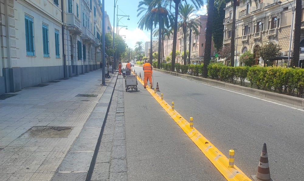 non è la pista ciclabile ma è per l’impedimento della sosta ho piacere ma molto addio sosta il messinese si accontenta di parcheggiare in altro luogo e andare a piedi