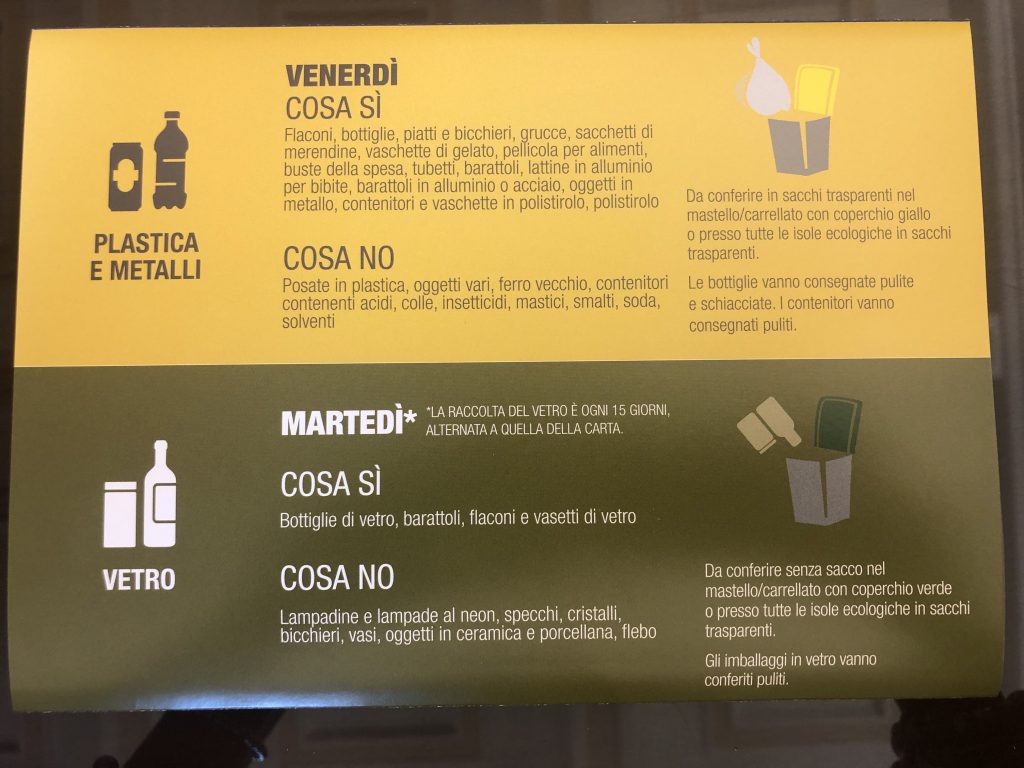 Cosa sì: gomma, carta carbone, carta oleata e plasticata, cd, vhs, musicassette, oggetti di plastica che non siano imballaggi (giocattoli), ceramica, porcellana, terracotta, foto, traverse per animali, pannoloni e pannolini pediatrici, contenitori per flebo in vetro e plastica, sacchi in plastica per lavaggi svuotati, contenitori vuoti per farmaci.