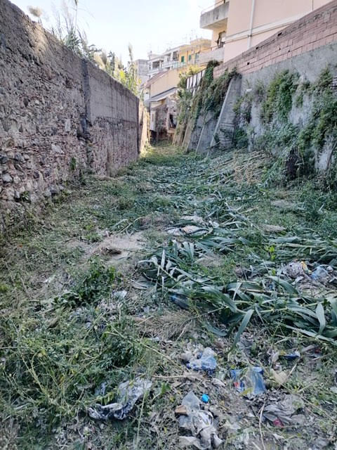 Vi prego di attenzionare anche il torrente Larderia, in particolare il canale che esiste in Vico Pennisi, è completamente ostruito da vegetazione e rifuti. Lungo la strada inoltre c’è una enorme discarica abusiva. Una bomba pronta ad esplodere!