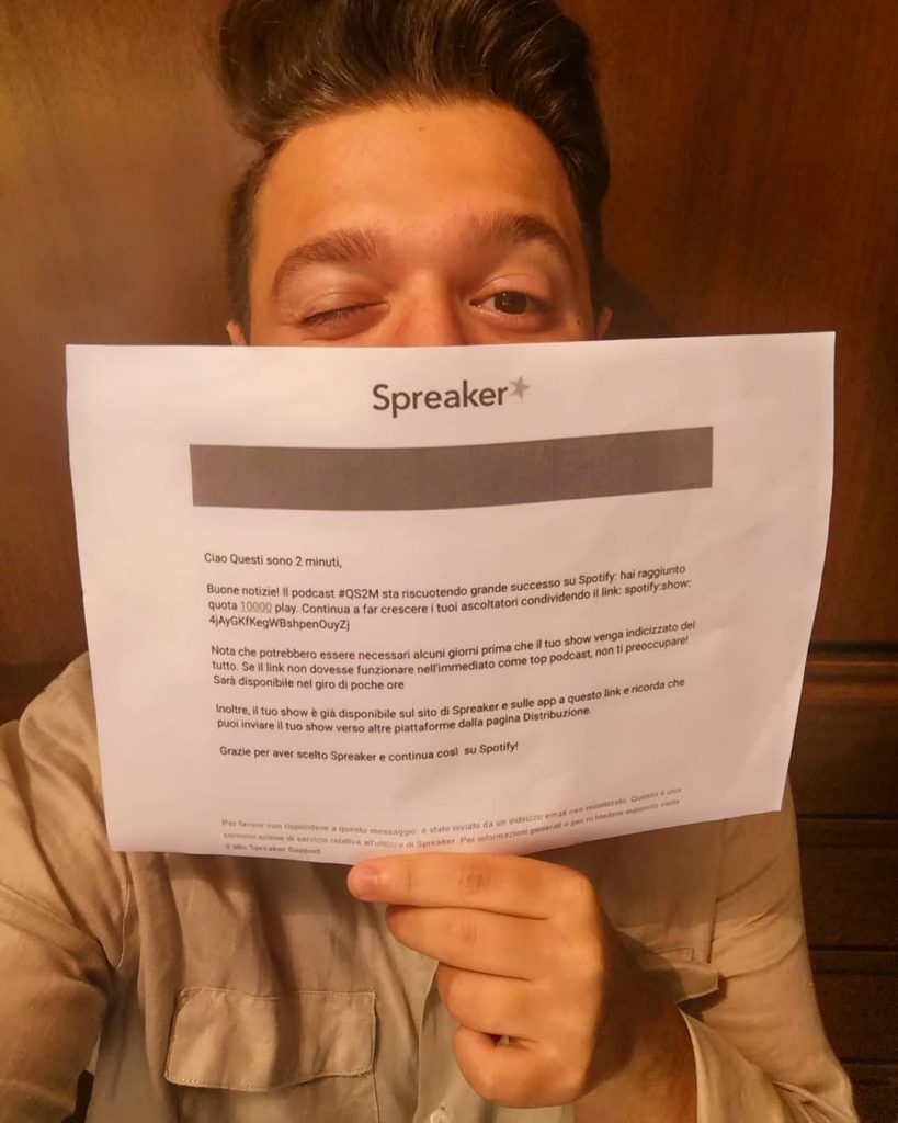 “Lo immagino sicuramente con un apporto video che renda visibile anche le espressioni facciali di chi registra: nel linguaggio la mimica è fondamentale. Quando comunque ascolti una traccia, specialmente un podcast, ti manca un fattore importante: il contatto visivo. Devi riuscire a dare alla voce l’intonazione corretta e a pronunciare le parole con il tono che vuoi gli ascoltatori comprendano senza poterti guardare. Io sto ancora imparando, ma spero un giorno di riuscire a trovare un modo per trasferire tutto anche su un canale YouTube e, perché no, a fare di Questi Sono 2 Minuti una piattaforma interattiva. Anzi, su questo ci stiamo già lavorando: dei colleghi della Sapienza della facoltà di informatica sarebbero interessati a creare un sito al quale chiunque possa “appoggiarsi” e proporre al format i suoi 2 minuti da pubblicare, così da creare un ricircolo di idee. Non mi aspettavo questa risposta in così poco tempo, quello che è certo è che non abbiamo avuto neanche il tempo di ambientarci, ci tocca lavorare sodo, per fortuna, fin da subito.”