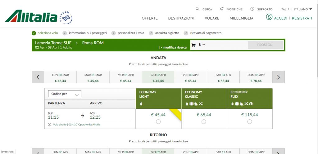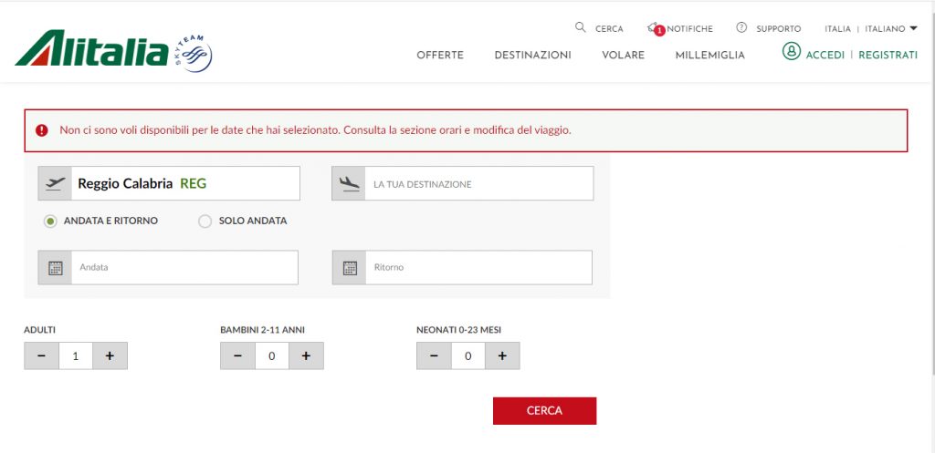 Reggio Calabria, impossibili acquistare biglietti dal sito Alitalia anche per la prossima stagione, manca la disponibilita dei voli
