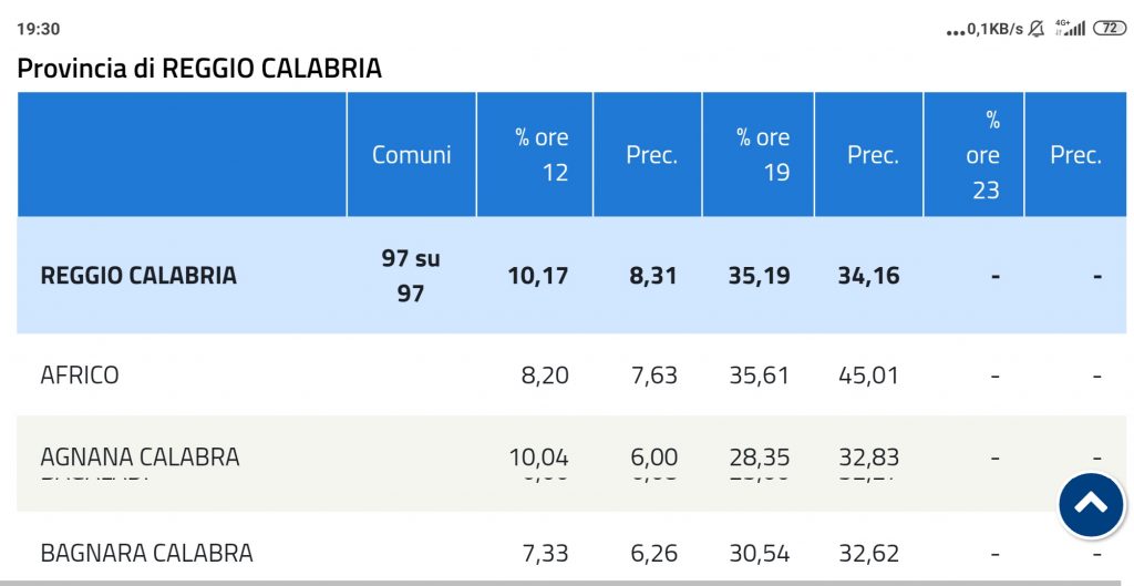 Reggio Calabria, un punto percentuale in più rispetto alle ultime elezioni, questioni dati dell'affluenza alle ore 19